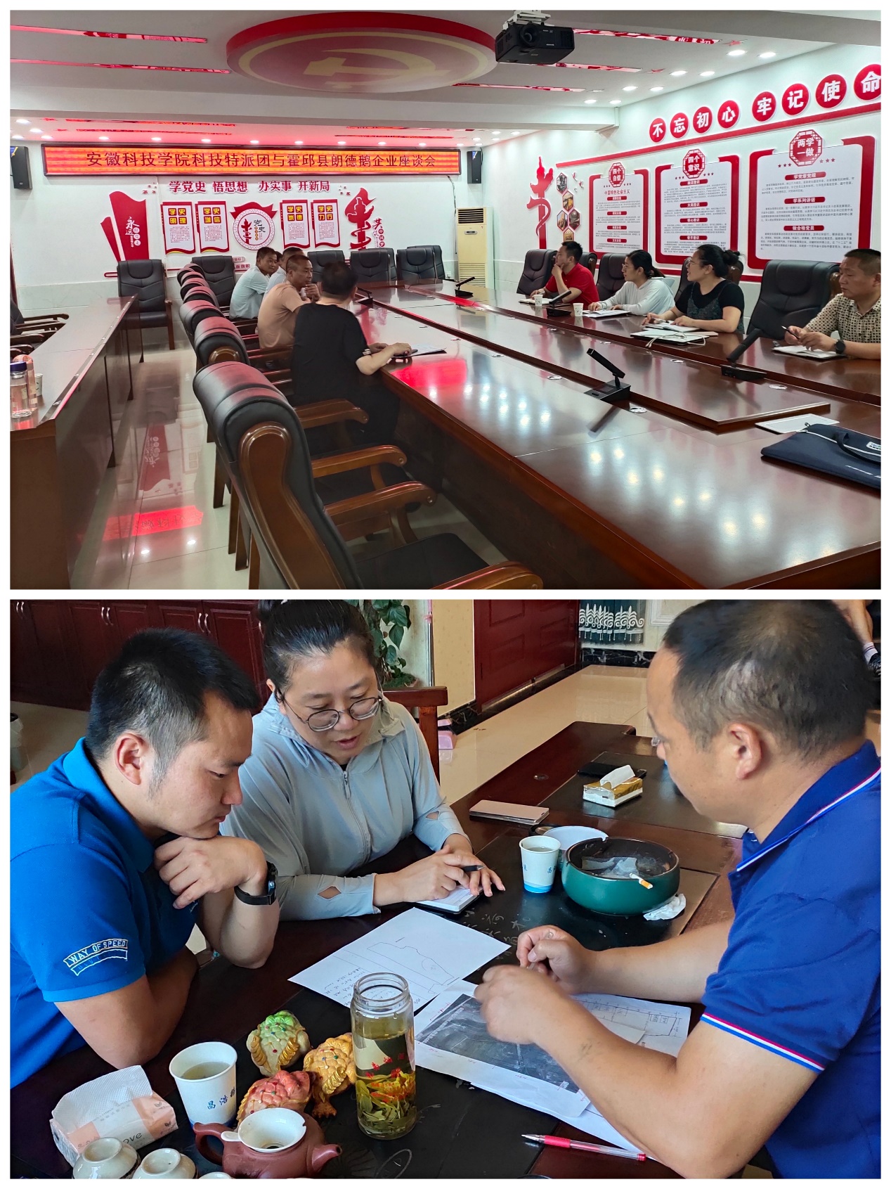 8月14日,在六安市霍邱县动物疫病预防与控制中心丁建华主任带领下,团队成员又进一步走访了霍邱昌浩朗德鹅养殖专业合作社、霍邱悯农禽业有限公司等多家企业,开展疫病防疫宣传,加强防疫意识(不同阶段疫苗的选择,疫苗免疫注意事项等)与饲养管理指导(鹅舍及水源消毒,通风,饲料成分等方面)等活动。