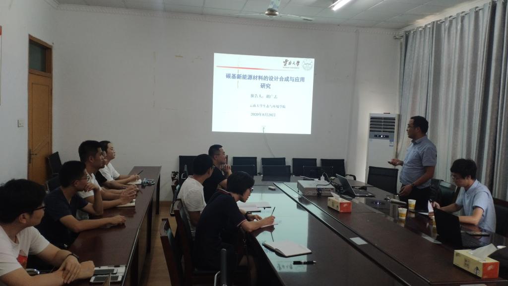 8月28日下午,资源与环境学院邀请云南大学高原湖泊生态与治理研究院胡广志博士到开云线上官网_开云(中国)作了题为《碳基新能源材料的设计合成与应用》专题报告。报告会在资源与环境学院院会议室举行,资源与环境学院教师、硕士研究生聆听了报告。报告会由环境科学与工程系主任范行军博士主持。
