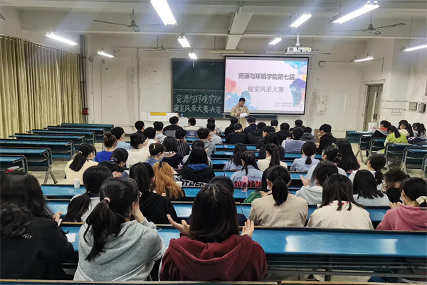 在寝室风采大赛初赛中,比赛形式主要以各个寝室上传寝室照片,并附加相关寝室描述至易班app,由资环学院同学进行投票选出进入决赛的寝室。3月13日,决赛于新B103举行,并邀请学生会主席团成员刘彪、赵坤,艺术文化中心负责人杨征南,易班工作站负责人查理,权益维护部负责人徐臣刚,学生联络部负责人夏莞页,宣传部负责人李劲松担任本次比赛的评委。决赛分为“寝室风采展示”以及“寝室才艺展示”两部分。在“寝室风采展示”环节中,各寝室通过配合ppt的讲解,介绍了各寝室的寝室特色,文化建设,寝室公约以及丰富的寝室特色活动。在随后的“寝室才艺展示”中,各寝室的歌唱,舞蹈等才艺展示,体现出寝室人员的文明健康,昂扬进取的精神风貌。