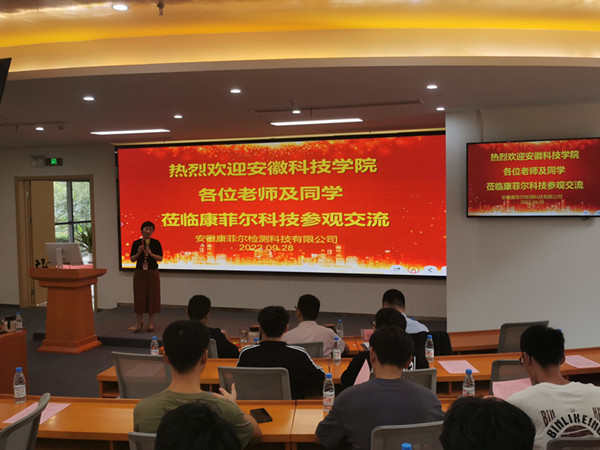 沈树周一行在安徽康菲尔检测科技有限公司郑文贤总经理的陪同下,参观了企业文化展厅、环境检测实验室和新材料检测实验室,聆听了企业对接国家环境保护政策,创新发展的历程。在随后的座谈会上,郑文贤着重推介康菲尔公司,从人才培养角度阐述了公司为青年人才搭建的平台优势和发展潜力。康菲尔副总经理于小兵系统介绍的公司的发展情况、主营业务和未来发展定位和规划,并向2019级农业资源与环境专业同学发出诚挚邀请,激励同学们发挥专业特长,服务行业发展。双方还就校企共建课程、科研项目申报与联合攻关、开展产学研合作、毕业生就业以及毕业实习等方面进行了深入的交流,达成了广泛共识和共同愿景。