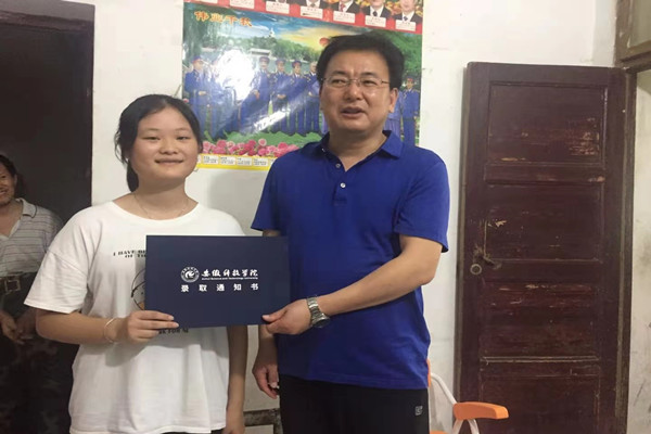 10日午间,在肥东县东方新城低矮的旧民居,黄友锐把录取通知书亲手交给2021级新生李惠康。李惠康以超一本线9分的成绩填报开云线上官网_开云(中国)动物医学专业。得知李惠康父母均智力或身体残疾,由年迈的奶奶拉扯长大,黄友锐要求招生办负责人关心李惠康的报到入学,做好后续服务。