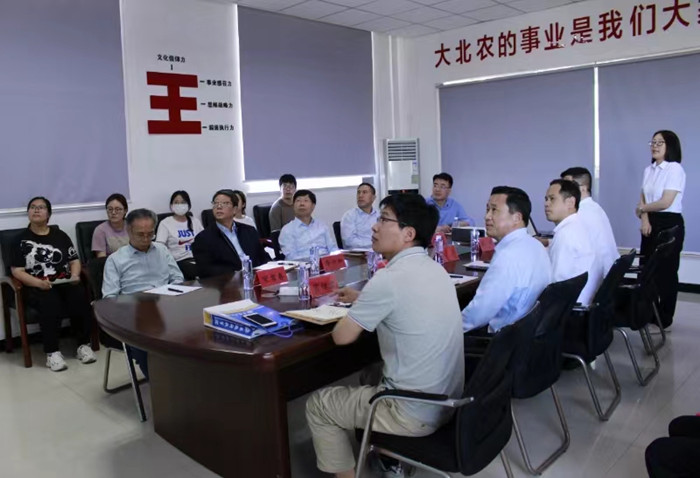 在大北农农牧科技有限公司,时伟回顾了多年来校企双方在产学研合作和产教融合方面取得的成就。他指出,学校与大北农合作基础雄厚,优势鲜明,成果突出,双方共生共赢,为乡村振兴注入强劲动力。他希望,双方进一步深化产教融合机制,打造产教融合共同体,形成闭环体系,取得更大更有影响力的合作成果。