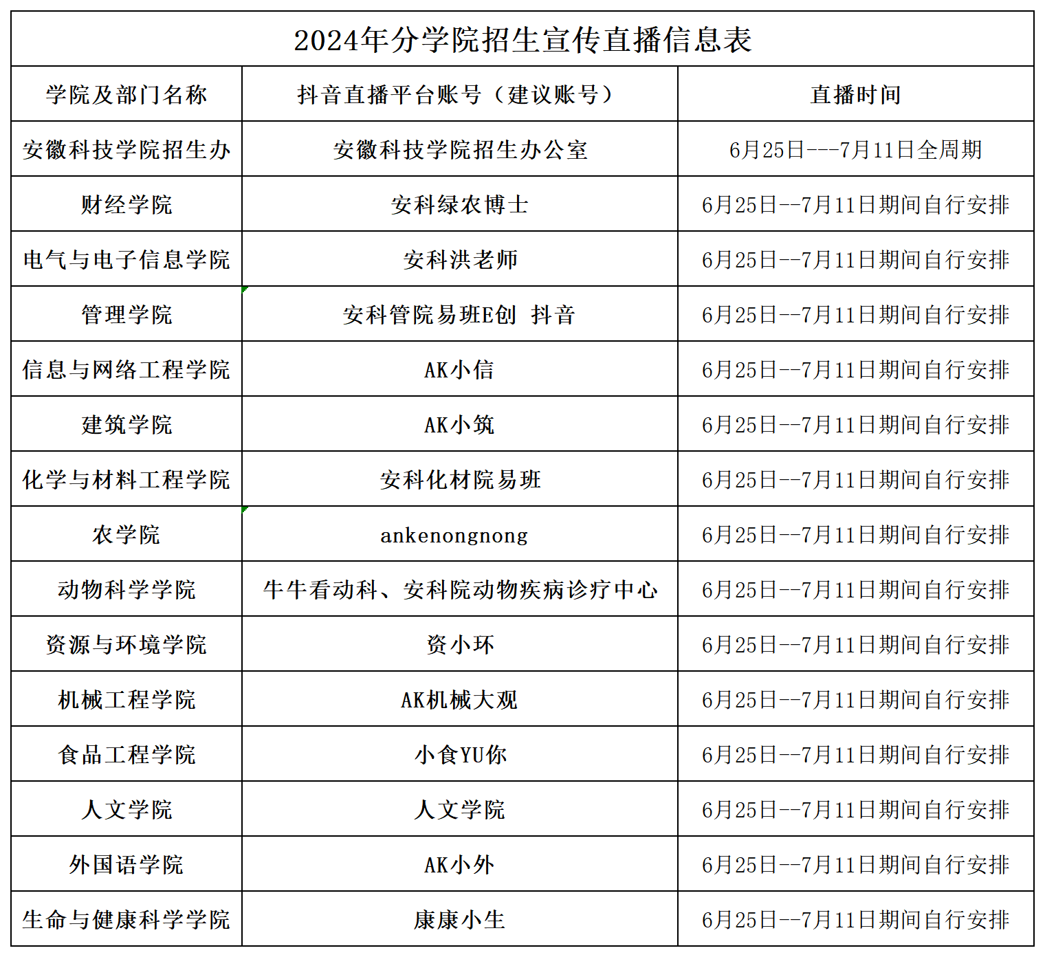 直播时间:6月25日-7月11日,时间安排详见下表。