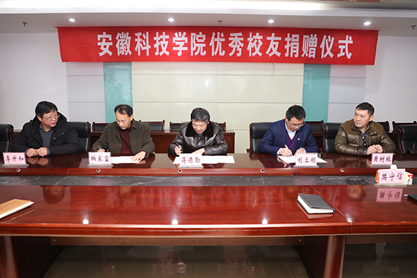 1月18日下午,开云线上官网_开云(中国)优秀校友捐赠仪式在新图书馆九楼会议室举行。校党委书记蒋德勤出席并讲话。优秀校友代表刘立明、柏家富,人事处处长刘东楼,财务处处长樊守信,招就处处长黄树桥,研究生处处长、动物科学学院院长李升和,招就处副处长杜小明、校友联谊办公室主任彭光明等参加了捐赠仪式。