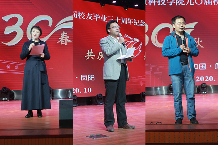 1990届农学专业杨守萍校友、王后林校友和兽医专业李家奎校友分别在大会上发言,动情表达了对母校的怀念之情,感恩母校的栽培,对母校取得的傲人成就感到衷心的祝贺和真心的喜悦,表示愿同广大校友一起为母校发展贡献力量,为安科建设添砖加瓦,也期待母校发展越来越好,取得越来越丰硕的办学成果。