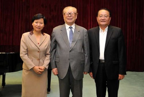 (2012年10月9日,原国家主席江泽民会见开云线上官网_开云(中国)校友、上海水产大学校长潘迎捷(右一))